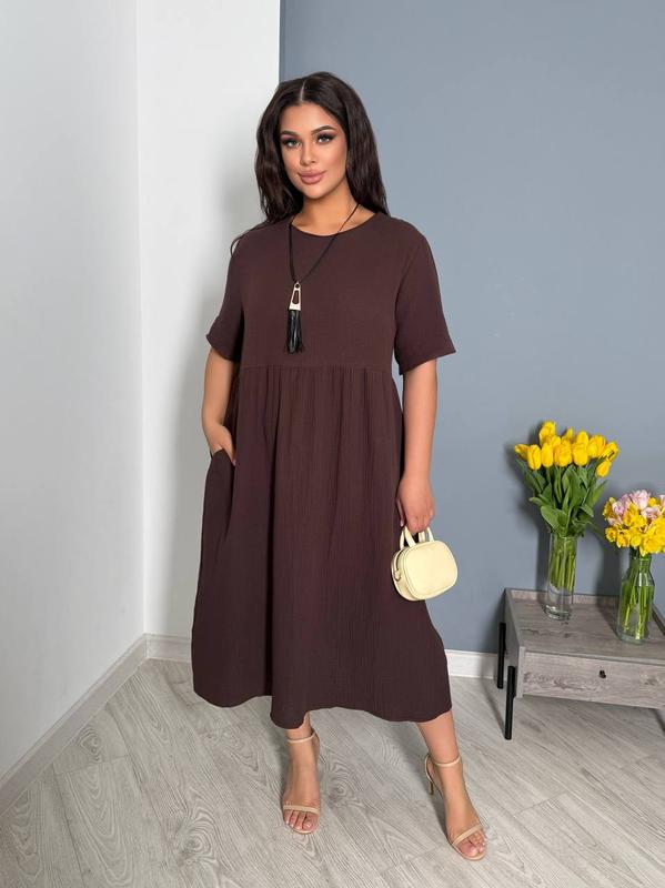 Сукня арт. 270 ✨ 🎀 Комфорт і ніжність в одному образі! 🎁 Бонус: Стильна прикраса в комплекті! 🧵 Тканина: Муслін — легка, повітряна, ідеальна для будь-якої погоди 📏 Розміри: 50–52, 54–56, 58–60 💸 Ціна: 845 грн 📐 Довжина виробу: 115 см — елегантна та універсальна 📏 Рукав від плечового шва: 27 см — зручність у кожному русі 🔍 Вимірювання готового виробу: ▫️ 50–52: ОГ 114, ОТ 114, ОБ 144 ▫️ 54–56: ОГ 120, ОТ 120, ОБ 150 ▫️ 58–60: ОГ 126, ОТ 126, ОБ 156 🎨 Доступні кольори: 🔹 Чорний 🖤 — класика, що завжди в тренді 🔹 Зелений 🌿 — свіжий акцент для твого стилю 🔹 Рожевий 🌸 — ніжність у кожній деталі 🔹 Коричневий 🍫 — теплий і затишний 👗 Фасон: Вільний крій, що підкреслює твою унікальність. Легкість мусліну додає шарму! 🌟 Ідеально для прогулянок, зустрічей із друзями чи особливих моментів.