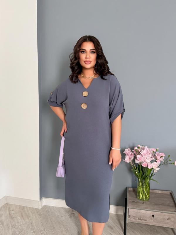 № 663 273 Женское платье, выполненное из ткани американский креп-жатка, который не просвечивается и не мнется. Платье свободного фасона, два боковых кармана. Размеры: 50/52, 54/56, 58/60 Ткань: Американский креп-жатка Цвета: джинс, серый, черный, морская волна, мокко Замеры изделия в 50-52 размере ПОГ-62 см, ПОТ- 58 см, ПОБ-58 см, Длина - 113 см, в 54-56 размере ПОГ-64 см, ПОТ- 60 см, ПОБ-60 см, Длина - 114 см, в 58-60 размере ПОГ-66 см, ПОТ- 64 см, ПОБ-64 см, Длина - 116 см.