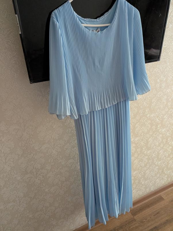 Нежное воздушное шифоновое платье плиссе гофре производство Италия небесного цвета