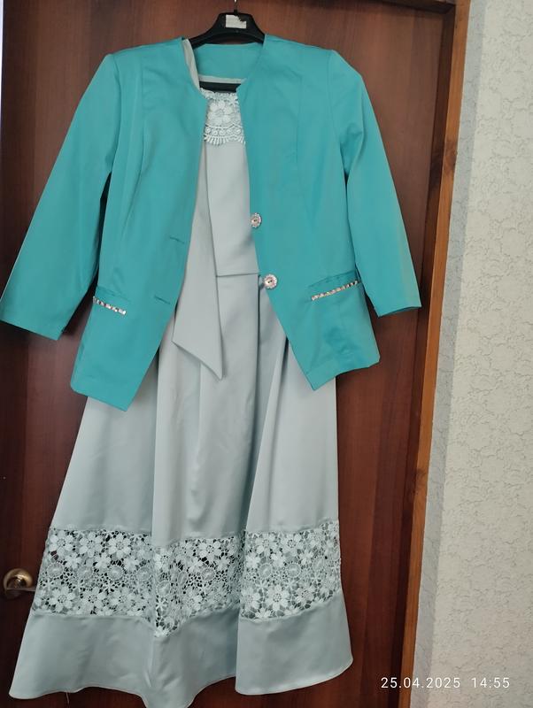 Комплект сукні та піджаку в новому стані. Чудовий вибір для важливої події або святкового заходу. розмір 48 Заміри надам стан ідеальний. жакет на фото більш голубий а насправді бірюза а плаття світла бірюза