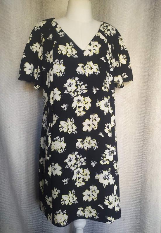 Женское платье с цветами, платье миди George Бренд, состав и цвет на фото в одном размере 18 (46) замеры ширина горловини 25 см, полуобхват груди 57 см, пояса 54, бедер (по низу карманов) 62 см, низ 63 см, Длина от плеча 95 см, длина рукава от горловины 35 см, полуобхват бицепса 21 см, низа рукава 20 см без пояса, с карманами, без подкладки, не светится немного тянется