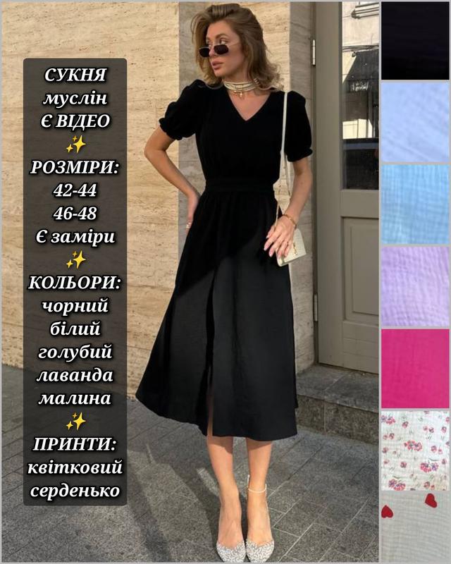 🔥🔥🔥 ФОТО РЕАЛ Сукня #099 Ткань: муслин Размеры: 42-44,46-48 Цвет: черный, белый, голубой, лаванда, малиновый, принт цветочный, принт серденько Нежное платье,в длине миди,из дышащей ткани, будет на жаркую погоду,способно садится по фигуре. Тот вариант, когда можно носить каждый день и даже на мероприятиях😻 Есть видео обзор Есть замеры Перед оформлением заказа обязательно ознакомьтесь с разделом "Про меня" на странице магазина или уточняйте все детали в личных уведомлениях. Нажимайте кнопку "Подписаться", чтобы не пропустить новинки, выгодные акции и распродажи!