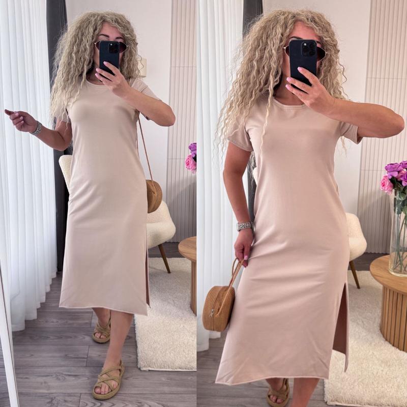 Платье-футболка – идеальный вариант на лето Разрезы в боковых швах добавляет модели легкости и динамичности, низ и разрезы не обработаны Ткань: кулир Турция (95% хлопка 5% эластана) легкая, приятная к телу, не парит, не кашлатится, очень красиво тянется Размеры: XS-S (40-42), S-M (42-44), L-XL (46-48), 2XL-3XL (50-52) Кольори: молоко, беж, рожевий, оранж, лимон Цена: 695 грн