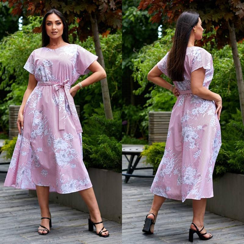 ✨Легкое платье ✨Модель N*********** ✨Размер:50-52,54-56 ✨Тканина:коттон ✨Пояс из ткани в комплекте,на талии резинка Замеры: Размер 50-52 ог-116,от-80/114,ос-150,длина-129,рукав-25 Размер 54-56 ог-126,от-86/120,ос-160,длина-135,рукав-27