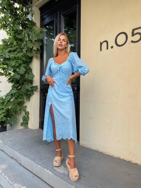 Сукня 2801 — легкість і витонченість в одному образі • Розміри: 42–46, 48–52 • Тканина: бавовна з вишивкою • Довжина: 130 см • Ціна: 1299 грн Заміри: ▫️ Розмір 42–46: • обхват грудей: 100 см • обхват стегон: 120 см • довжина від талії до розрізу: 30 см ▫️ Розмір 48–52: • обхват грудей: 116 см • обхват стегон: 130 см Розкльошена спідниця, легкий силует і ніжна вишивка роблять цю сукню справжньою перлиною літнього гардеробу.