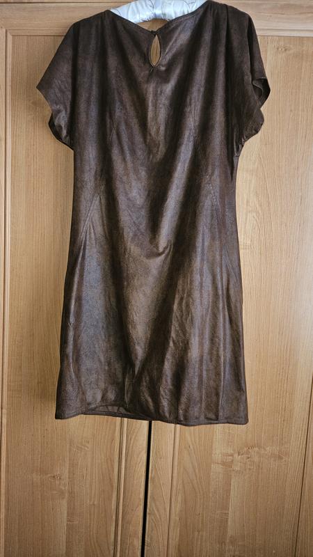 Классное платье-сарафан. Крой очень интересный. Материал под замш, очень приятный к телу. Подойдет на 44-48 размер. Ориентируйтесь на замеры. Тканина трошки тягнеться