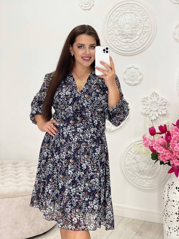 Платье 1062VL Размеры : 46-48,50-52,54-56,58-60 Цветы основы: синий, черный Ткань: шифон + трикотажная подкладка. Платье с длинным рукавом из шифона, на рукавах и поясе сзади ряд резинок, на груди V-образный разрез, корсет спереди на пуговицах на ножке, сзади на резинках, от талии юбка клеш. Рост модели 170см. На параметры 110-86-112 подойдет 50-52; на параметры 96-74-104 подойдет 46-48. Параметры по внешнему шву: ✅46-48: ОГ109, ОТ70 (макс 93см), рукав 63см, длина платья по спинке 107см; ✅50-52: ОГ120, ОТ80 (макс 102см), рукав 64см, длина платья по спинке 108см; ✅54-56: ОГ130, ОТ90 (макс 112), рукав 64см, длина платья по спинке 109см. ✅58-60: ОГ140, ОТ100, рукав 65, длина по спинке 110см #Одеждукраина #женовременность Внимание! По данному товару есть отправка: - Укрпошта - повна оплата на карту - Новая почта - полная оплата или наложка с подпиской 150 грн Безопасной оплатой этот товар не поставляем! В случае наложки - меряете на поште, если не подходит - отказываетесь. Предписание при отказе не возвращается. Если достал товар из почты домой нет.