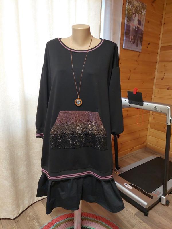 пог 64 пот 64 поб 68 длина 100 платье повседневная черная с украшениями с стразами.С котманами и пышной юбкой, удобное, красиво тянется.