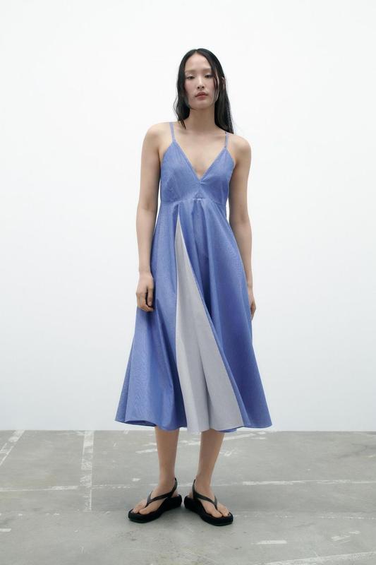 Сукня від ZARA, з останніх колекцій, розмір вказано XS. Є кишені, бретелі не регулюються, збоку замок. Сток, стан нової. Торгу немає ! Склад: 100% котон. Заміри: Пог 39-40 см + тягнеться до 45 см; Пот 36 см + потягнеться на 2-3 см; Поб вільно; Довжина по спині 86,5 см; Довжина від подмишки по боковому шву 89 см; Довжина від плеча 115 см.