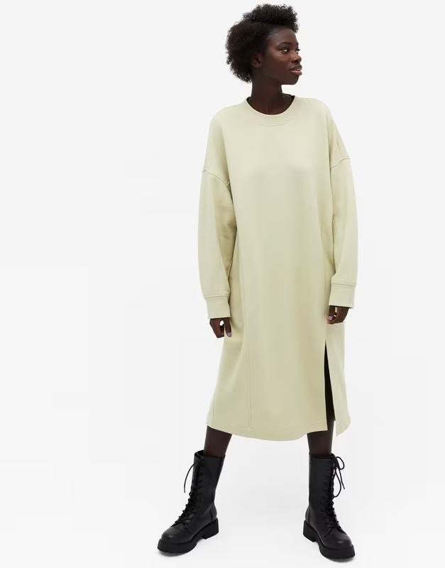 Оверсайзовое платье худи с карманами, светло-оливкового цвета, размер L (сильный оверзайз), может быть XL тоже