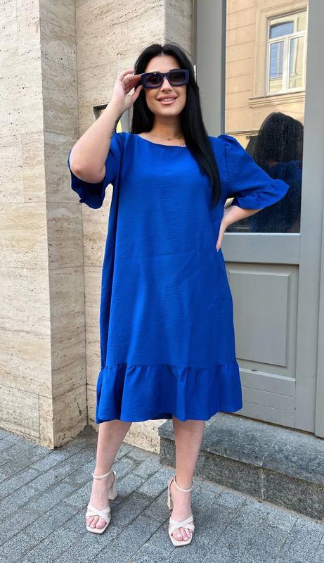 Модель 600 👗Платье миди является лучшим вариантом летом, поскольку оно обеспечивает поток воздуха и сохраняет прохладу. Украшена рюшами по низу изделия и рукавам. Спинка декорирована завязками из основного материала. Само платье расширено к низу. 🧵Тканина: льон бохо (жатий льон). Дарит прохладу в жаркие дни 🎨Цвет: электрик, оранж 📏Размер : one size batal (смотрите замеры) 💰Цена: 700 грн 💣 Замеры по изделию, ткань не тянется, модель трапеция: Длина рукава 36 см Длина изделия 109 см Охват груди 124 см Охват по низу виробу 138 см