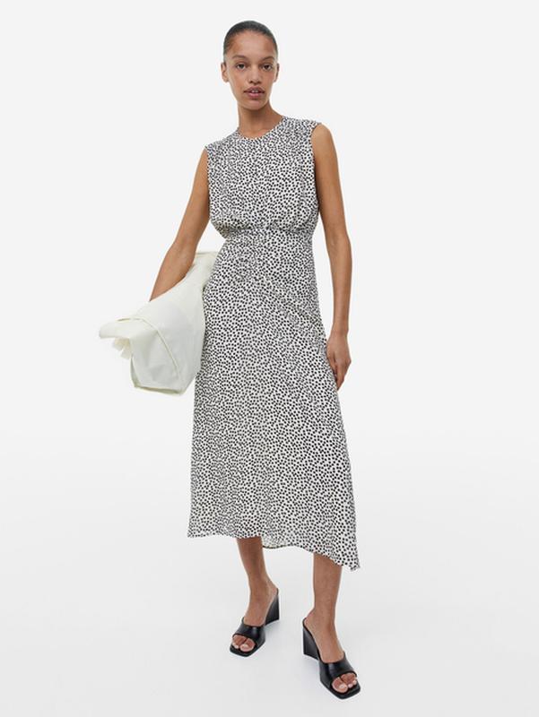 Розмір по бірці М ЗАМІРИ: Напівіоб'єм грудей-50 Напівіоб'єм талії-39 Напівіоб'єм стегон-56 Довжина-130 Ширина плечей -40 Сукня на підкладці- не просвічується Спереду вверху застібається на гудзик