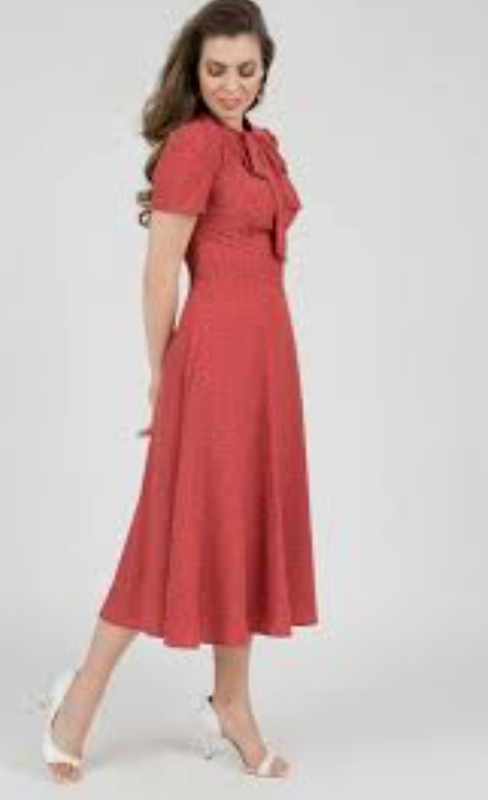эластичное трикотажное платье с V - образным вырезом и бантом в декольте