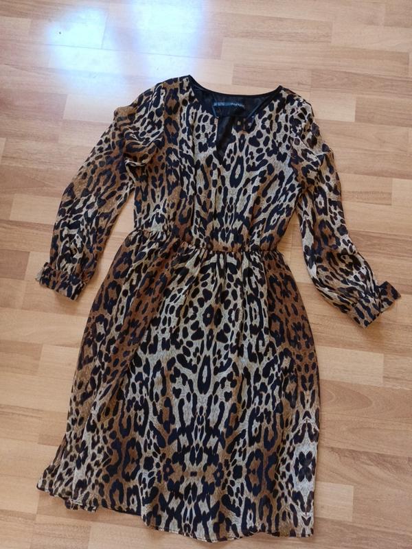Платье Zara в леопардовый принт. Пог 44_45, пот 33 + резинка, длина 94_95, рукав 57