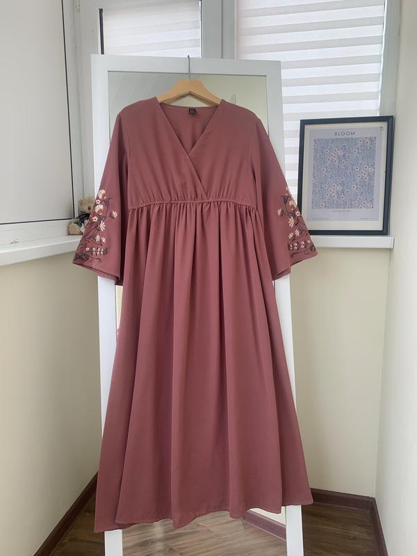 Сукня із вишивкою Розмір М Підійде для вагітних Довжина 125 см Півобхват грудей 47 см Півобхват талії 41 см, на резинці, тягнеться Рукав 46 см Рукав від горла 59 см Матеріал: поліестер Стан: ідеальний