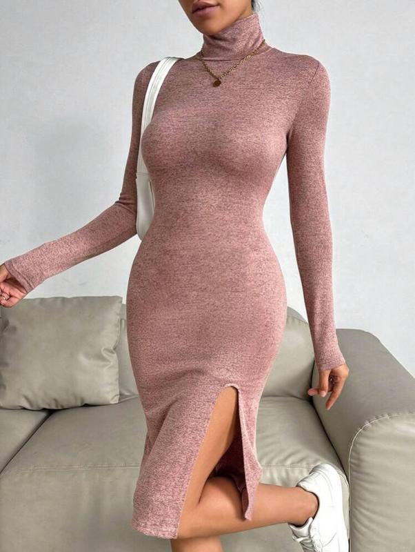 Платье длиной миди с разрезом на юбке и горловиной. Размер EU 40/42 L. Стан новый без бирки.