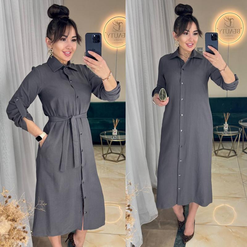 Платье рубашка с поясом лен жатка 42-52 р-р