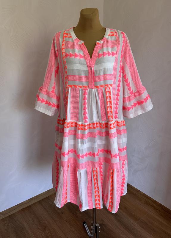 ❤️ Регулярне оновлення товару, жми кнопку "підписатися", щоб не пропустити новинки🆕 ‼️Ціна вказана з урахуванням оплати комісії 15% на Шафу☝️ ❗️❗️❗️Всі ціни встановлені з урахуванням знижки та 15% комісії сайту від продажу❗️❗️❗️ 💰Додаткова знижка можлива при покупці 2х і більше речей, детальна інформація у розділі «Про мене»💰 Трендова ярусна сукня довжини міді призбирана по грудях,у подібний виріз горловини із застібкою на ґудзик,пишний рукав з воланом,натуральна тканина (бавовна із додаванням для міцності поліестру)стан нової речі,бездефектів і слідів носіння,виготовлено в Індії,вказано розмір uk 22,eur 50,порівнюйте із вимірами👇👇👇 По плечах 40 см По грудях 66-67 см по таліі 67-68 см по стегнам вільно,біля 90 см довжина по спинці від плеча 104 см Рукав 42 см,ширина 22 см ‼️‼️‼️ F&F є одним з найпопулярніших брендів одягу у Великій Британії та займає одне з перших місць з продажу у Tesco. 6. Якість вища за середню, з орієнтацією на останні модні тенденції, зробили цей бренд популярним далеко за межами туманного Альбіону. Арт6075.47
