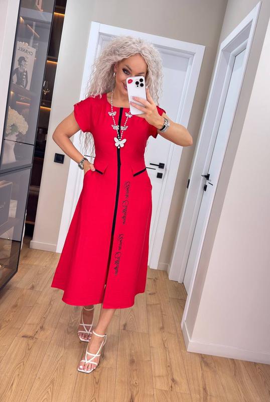 ‼️ОТПРАВЛЕНИЕ ВПРОДОВЖ 2-5 РАБОЧЫХ ДНЕВ!!️ Женское легкое платье Ткань с легким фактурным эффектом подчеркивает свежесть и утонченность образа. Контрастная черная отделка и карманы добавляют нотку графичности и стиля. Вертикальная линия с изысканной надписью визуально вытягивает силуэт, придавая фигуре стройности. Сзади талия регулируется на завязках. 🔹Ткань: американский креп 🔹Размеры: 44, 46, 48, 50, 52, 54, 56, 58 🔹Цвета: красный, голубой, черный, серый, желтый, синий, мокко. Артикул: S043