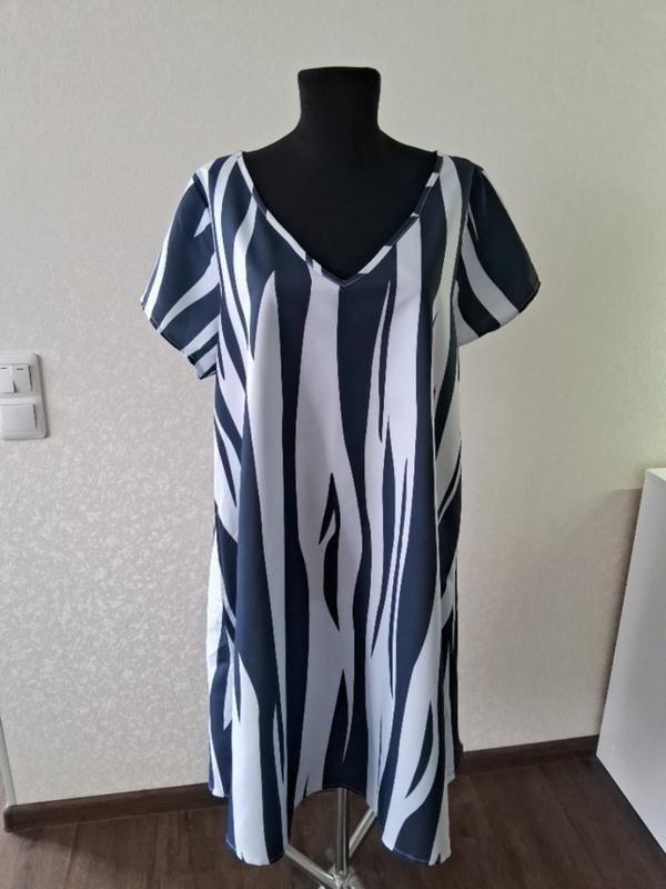 третья единица в подарок (при оплате на карточку) Красивое качественное платье р.50-52 А- селауэт ( подойдет на все типы фигуры) шифон ( 100%-полиэстр) свободная и приятная на ощупь состояние новой вещи, с пломбой/упакованная цвет: темно-синий + нежно голубой замеры на фото (пог56, длина 98, плечи 40, полуобхватстегон-66 ) материал не тянется оплата на карту Приватбанку возврат нет