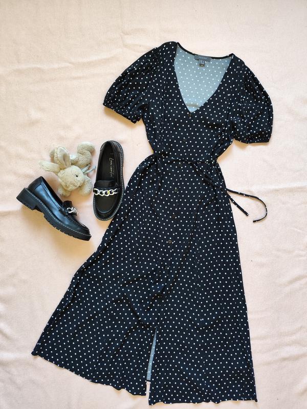 Платье черное в горошек р 36 38 s m 44 46 меди Primark с коротким рукавом 1 раз одетая долж 124, ПОГ 48, ПОТ 42, пл 36, рук 28 см