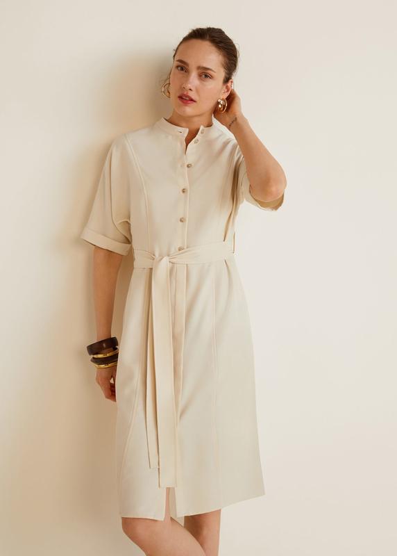 Сукня сорочка довжиною до колін з текстильним завʼязуваним паском. Застібка спереду на ґудзики, комір невисока стійка, рукав до ліктя з підгином внизу. Ніжний кремовий колір. Тканина дуже приємна на дотик, 61% органічна віскоза (lyocell) з незначним додаванням поліестру. Чудово підійде як для свята з підборами, так і на щодень з балетками, кросівками. РОЗМІР: S ЗАМІРИ: довжина 104 пог 48/50 пот 42 поб 50 рукав від коміра 44 СКЛАД: ліоцел 61% поліестр 39% СТАН: ідеальний ➖➖➖➖➖➖➖➖➖ Речі в наявності👗🧥👠 Фото на собі не роблю. 🙅♀️ Відправка: НП, Укрпошта📦 Всю необхідну інформацію надам😊