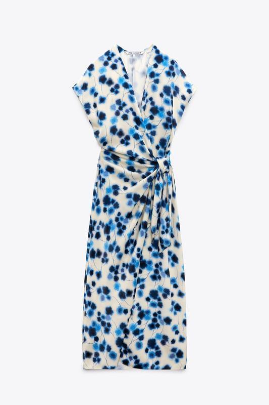 СУКНЯЯ НА ЗАПАХ С ПРИНТОМ ZARA В наличии размер XS, новая, с бирками, оригинал 💫. Подойдет также на S💞. Впитывающую очень классную, оригинальную модель, ткань в виде атласа ложится просто 👌🤗 Платье средней длины с V-образным вырезом и короткими рукавами. Запах, сборки и завязки из той же ткани спереди. Серовато-бежевый цвет | 2764/008