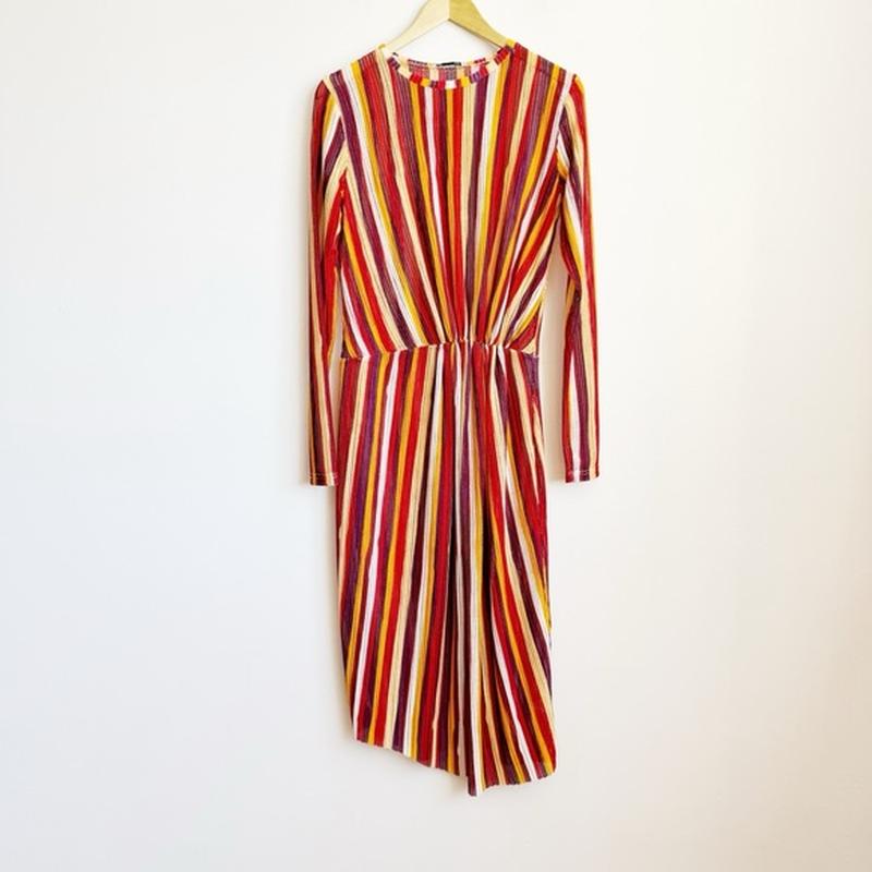 Платье миди в разноцветную полоску от zara с высоким вырезом и асимметричным необработанны...