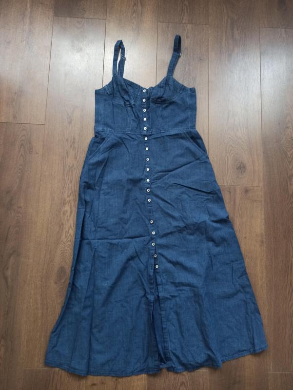 Синее платье корсетного типа в размере М длина изделия 113 см (с бретелями) полуобхват груди 40 см полу охват талии 37 см