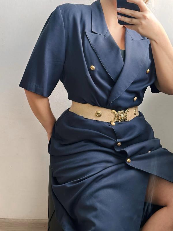Вінтажна двоборта сукня-жакет з коротким рукавом. Довжина - 110см , груди - 60-65см Великий розмір