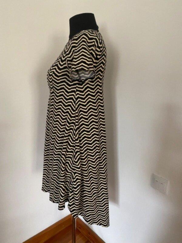 Классное платье американской дизайнерки, 8% эластана в составе, демонстрировано на манекене 52 размера. Указан размер ХХС. Длина - 87 и 101см, плечи - 36см, рукав от плеча - 20см, пог - 45см, пот - 55см, поб - 75см. Фасон трапеция.