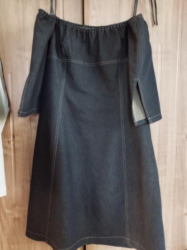 джинсовое платье со спущенными рукавами, с боковым замочком.Пог-50см,пот-’39см, поб-50см,длина-86см с