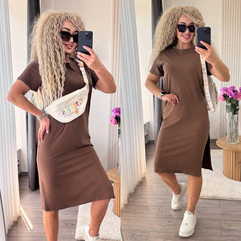 Платье на лето из натуральной ткани Размеры : 42-46 48-50 Описание: шоколад и черный ➖ 42-46 ОГ 100 ОБ 104 Длина 110 ➖ 48-50 ОГ 108 ОБ 112 Длина 112 Ткань: турецкий 100% коттон на лето Цена 525 грн