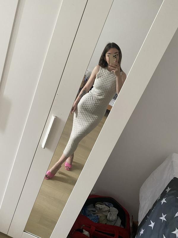 Вдягнена на зріст 1,56 Довжина виробу 128 Ширина 35 Розмір XS тягнеться тканина