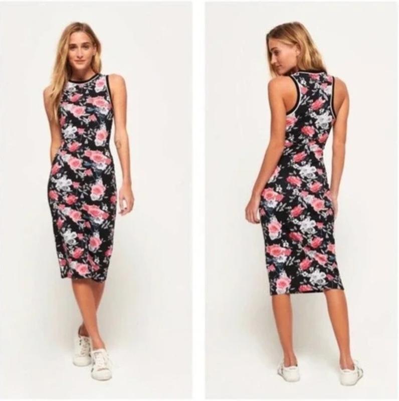 Superdry – уникальная британская марка одежды, дизайн которой сочетает в себе элементы японского уличного стиля и американский винтаж. Одежда бренда также отличается непревзойденным английским качеством и особым вниманием к деталям. Шикарное облегающее платье миди в цветочный принт Superdry made in Turkey. Миди - платье без рукавов из эластичной ткани в цветочный принт. Слева снизу фирменная нашивка. Платье хорошо пружинит. Размер указан 38 (лучше ориентироваться по замерам) Плечи 28 см ПОГ 39 см ПОТ 40 см Длина 102 см Состав: 95% Cotton 5% Elastane Доставка: рада приветствовать вас в магазине 🐼белый умка🐼👚👙🧣🧤🧥🧦👔👕👗🥼👜🥿👟👢👠🥾🛍🛍🛍 Подписывайтесь на обновления 👀👀👀👁👁👋 постоянным клиентам скидочки 🍓🍬%%%