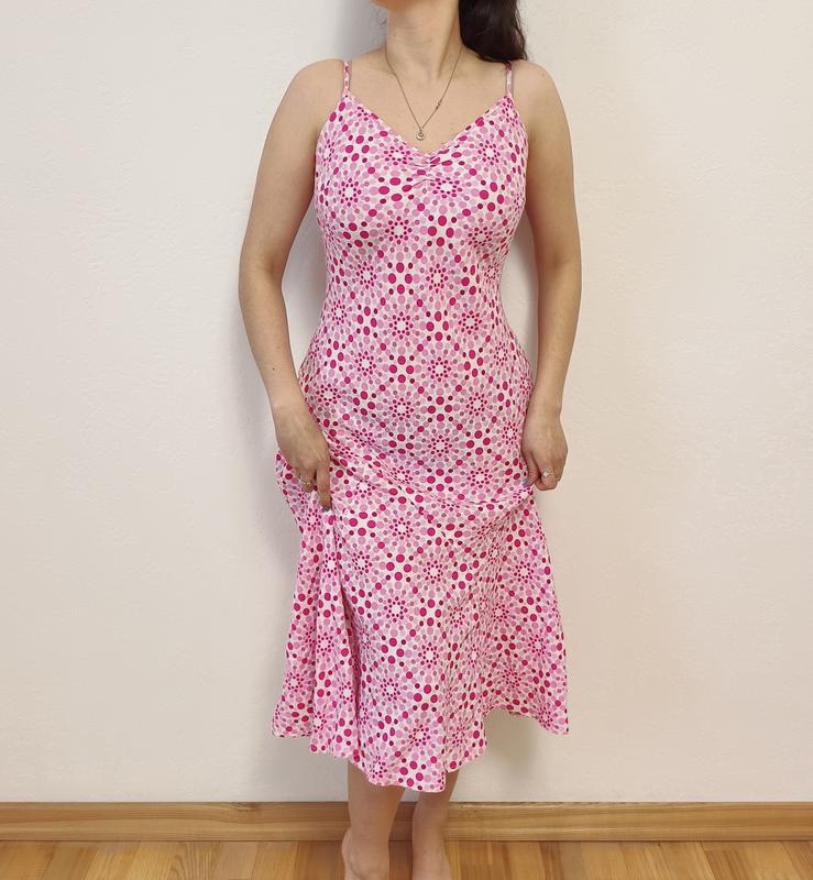 Роскошное льняное платье от качественного британского бренда Per Una. Дело из собственной коллекции, но, к сожалению, она мне все же крупновата, поэтому было решено найти ей новую обладательницу. Выполнена она из высококачественного 100% льна: плотный, "толстенький", "тяжкий", мягкий и комфортный к телу, не паркой. Платье имеет довольно классический крой: декольте в форму сердца, приталенный силуэт, тонкие бретели, расширенная к низу юбочка. А какой гипотетический принт подобрали для данной вещи: розовые горошки танцуют завораживающим рисунком на белоснежном полотне. Очень очаровательное, атмосферное платье, которое прослужит вам не один сезон. Для примера прикрепляю официальный сайт бренда (образное платье вкрасит на нем около 60-70 фунтов) - https:/************************************************************************************************************************************************ Размер: на наборе указан 12 размер, соответствующий L-XL, и лучше ориентироваться на замеры. Замеры: ПОГ - 47-48 см, ПОТ - 42 см, ПОБ - 56 см, низ - 110 см, длина - 108 см, длина бретель - 21-37 см. Состав: 100% лен. Параметры модели: ОГ - 84 см, ОТ - 68 см, ОБ - 96 см. Рост - 170 см.