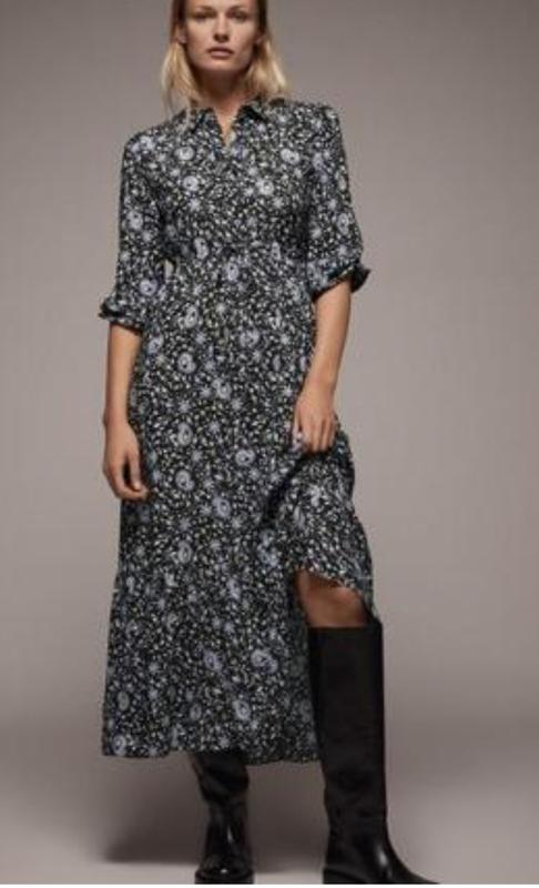 Платье из тонкой вискозы, на пуговицах, в низу один волан, пояс на кулиске. Длина 127 пог 47