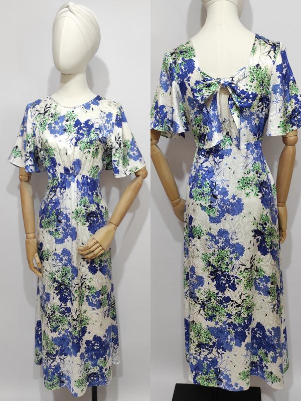 Новое платье с очень красивой спинкой. Имеет короткие рукава-крылышки и слегка завышенную талию спереди на резинке Размер: 12 (М) Замеры: ПОГ-49см, ПОТ-44см, длина платья-120см Состав: 100% вискоза Стан: нова
