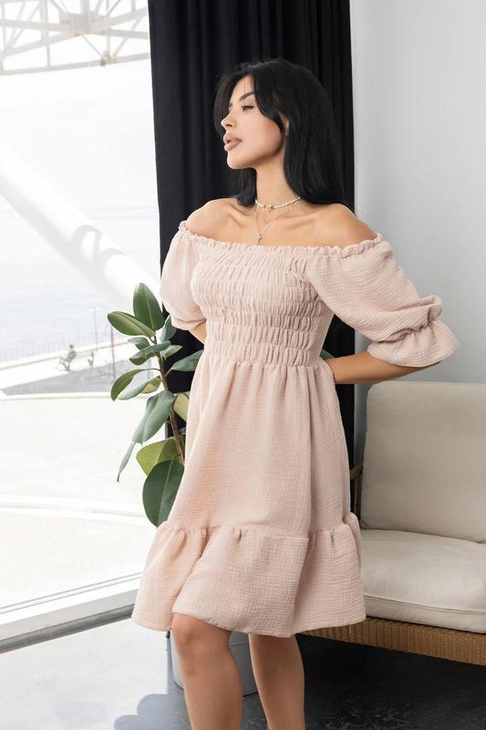 Мод 211 им Размер:42-44,46-48,50-52 Ткань:муслин Платье, которое будет вам придавать уверенность в себе и в качестве вы будете стильно выглядеть. Длина до колена. На груди резинка.Можная одевать со спущенными и с приподнятыми плечками.Супер качество