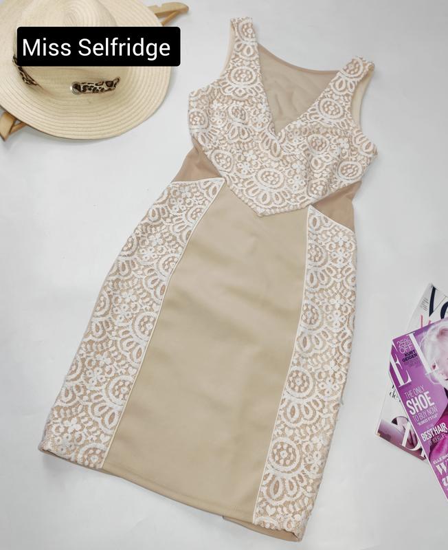 Платье женское миди футляр телесного цвета с кружевом от бренда miss selfridge s