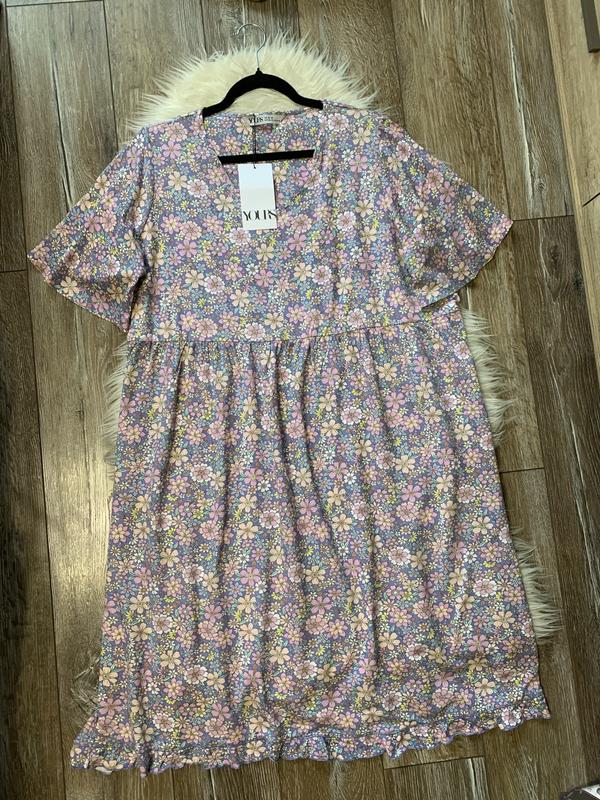 Новое женское платье в цветочный принт YOURS Размер указан 46-48 Длина 102см Рукав 27,5см Плечи 38см Длина до талии 37см Поб (ориентировочно) 73см (свободное) Низ 79см. Состояние новое с бирочкой. Стильный нежный принт.