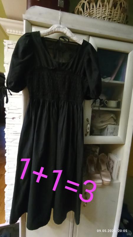Красивое платье в длине миди. рукавчики на резинках и на завязках. в талии и в груди резинка,позади спинка завязывается на завязку бавовна длина 116 см рукава 34 см полу ширина под рукавами 45 см Акция две вещи приобретаешь третья в подарок дешевле по цене каждой