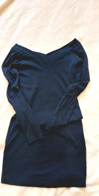 темно синее платье в рубчик с длинными рукавами