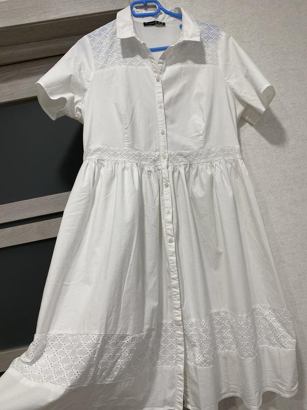 літня сукня Atmosphere, розмір L . Вказано 20, але краще на 14. Довжина 106 см, довжина полички до лінії талії 40 см, пояс 4 см, плечі 40 см, нпог- 55 см, талія 1/2- 49 см, стегна 1/2- 100 см.