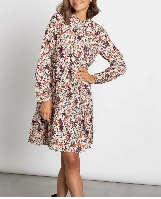 Платье в цветочный принт, ярусное, с длинным рукавом,андр 12