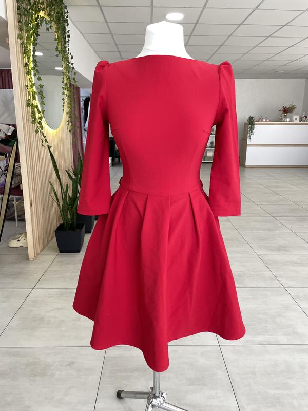 Елегантна червона сукня міді-ваш вибір для особливих моментів! Насичений червоний колір привертає увагу та підкреслює вашу впевненість Високоякісна тканина ,приємна до тіла та комфортна у носінні На спині блискавка,завдяки якій сукня легко вдягається. Наявність дефектів:є пару невеличких зацепок. Відсітній поясок Ідеально підійде для романтичних побачень ,вечірок і.т.д Підкресліть свою неповторність у цій сукні.