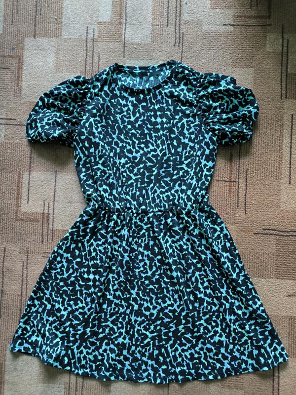 Летнее платье черно зеленого цвета, отрезное по талии без пояса, рукав типа фонарик. Ткань не мнется, хорошо брать в поездку. Длина платья 91 см под руками 50 см