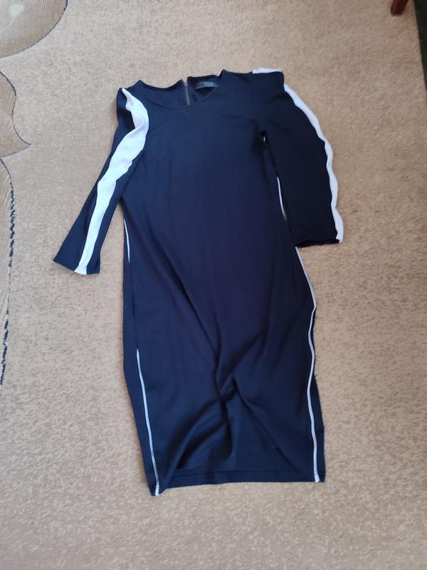 Продам платье черного цвета Размер С,М По бокам белые полоскашки, рукава гнутся собраны четвертние