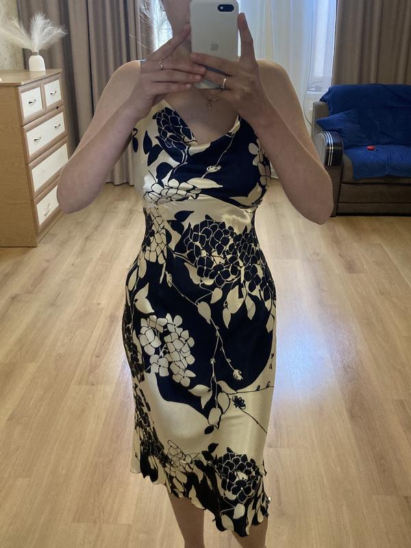 Дуже гарна шовкова сукня з гарним декольте🫶 Розмір S-M Є маленький дефект,дірочка спереду внизу сукні,але взагалі непомітна За замірами звертайтеся в особисті❤️