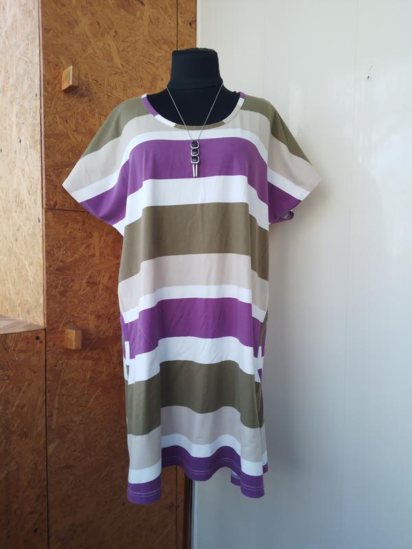 Коттоновое платье футболка в идеальном состоянии. По бокам карманы. Растяжимость небольшая до 2-3см. Замеры: ПОГ 56, ПОТ 57, ПОБ 62. Длина изделия 83. Доставка и оплата Оплата на карту Райффайзен банка Отправляю в течении 2х дней Укрпочтой и НП, мистэкспресс